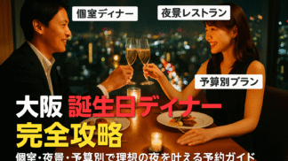 誕生日ディナー、どの店にするか迷いますよね。大阪は梅田・難波・心斎橋など主要エリアだけで飲食店が数千軒規模。口コミや写真だけでは「席の種類」「予算総額」「サプライズ対応」まで読み切れず、当日「騒がしい」「席が狭い」「想定より高い」という失敗...